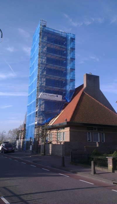 Eind november 2013 vielen stukken natuursteen naar beneden. De stukken steen zijn afkomstig van de zandstenen lijsten onder en boven de raamopeningen die zich in de toren bevinden. Hiervoor is een stempelconstructie en de steigenconstructie uitgewerkt.